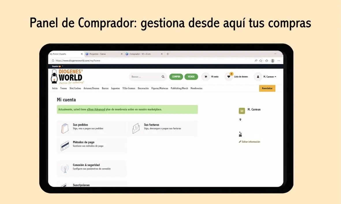 - Planes de Suscripción: Deberás elegir un plan (eShop) según el volumen de tus anuncios.